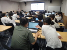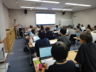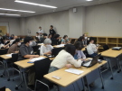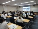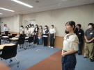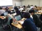 | 受付の様子と開講式 | 高田短期大学キャリア育成学科の学生ボランティアも参加してくれました | |||